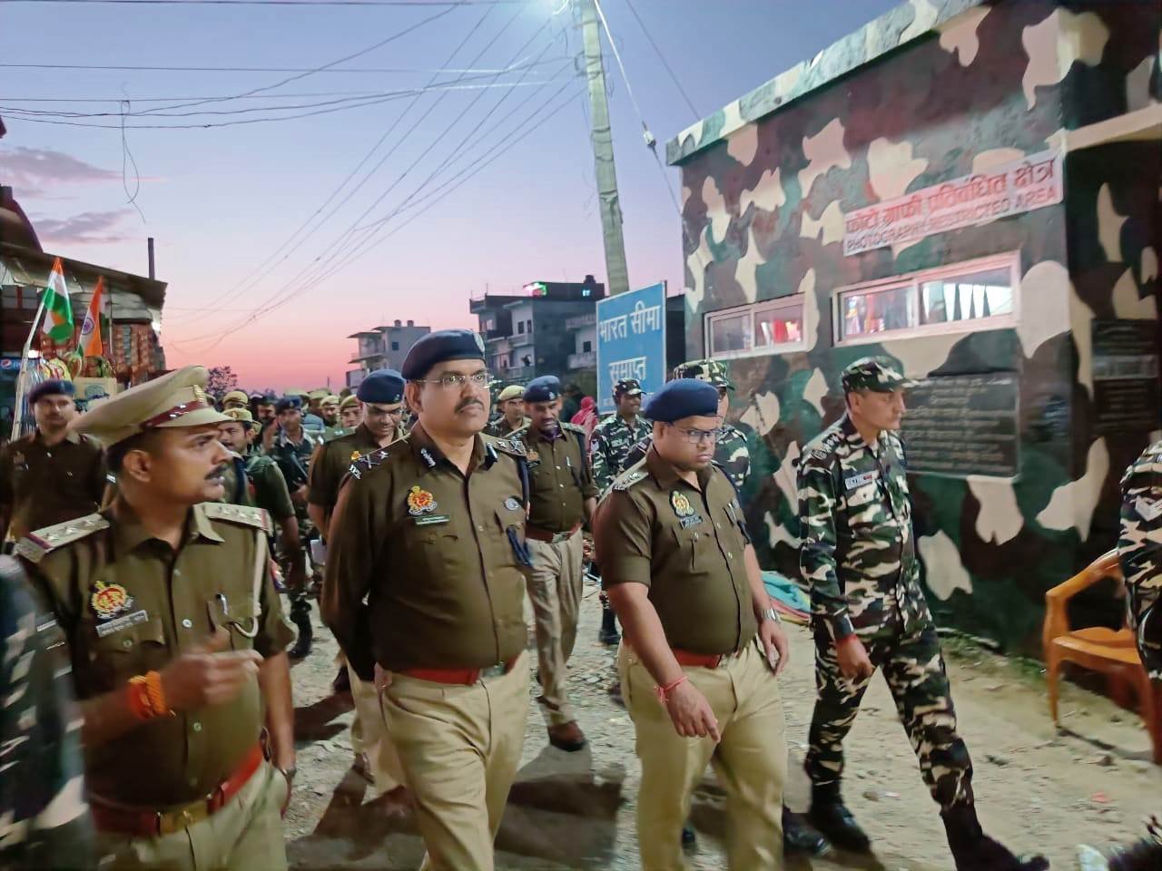 गोष्ठी के पश्चात पुलिस व एसएसबी की संयुक्त टीम के साथ अलीगढ़वा बार्डर पर किया गया फ्लैग मार्च
