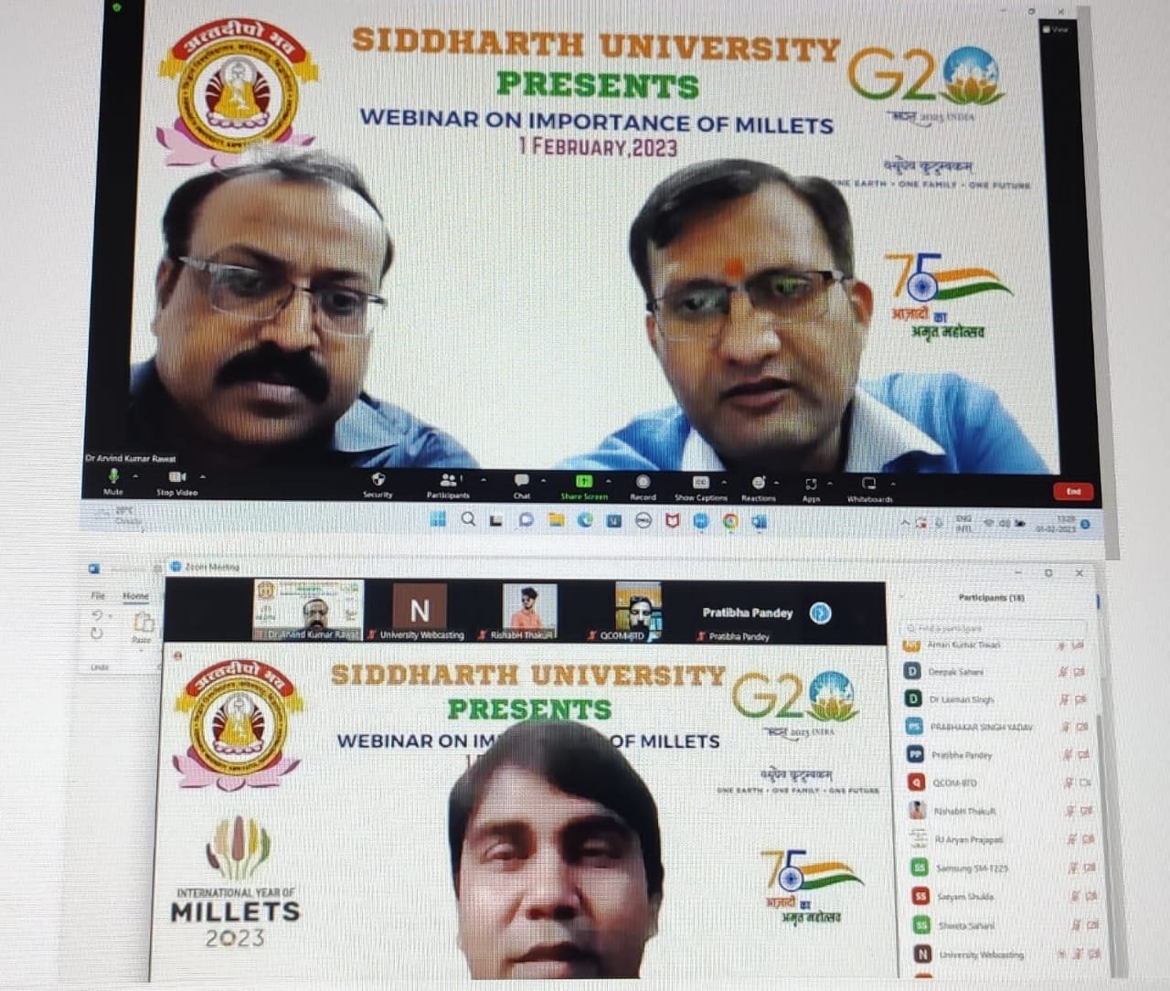 इसी क्रम में बुधवार को सिद्धार्थ विश्वविद्यालय में मिलेट्स (मोटे अनाज) का महत्व विषय पर ऑनलाइन व्याख्यान का आयोजन किया गया।