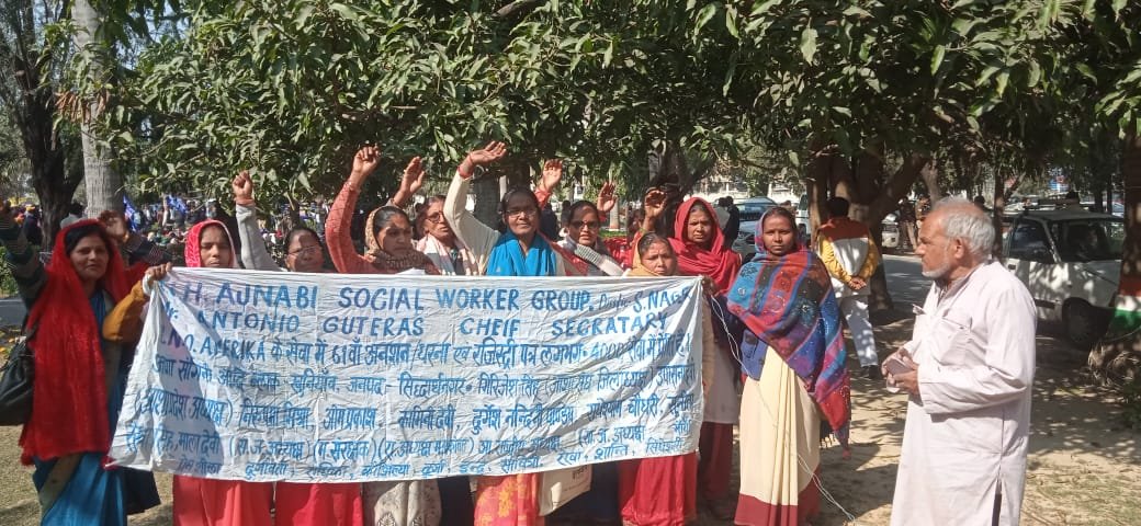 धरना अनशन की अगुवाई एन एच अजनबी समाज सेवी ने किया । उन्होंने कहा कि आशा सांगिनी ,आँगन बाड़ी एवं सविदा कर्मचारी को छ : माह का प्रशिक्षण देकर विभाग से जोड़ा जाय । साथ ही साथ बकाया मानदेय दिलाया जाय ।
