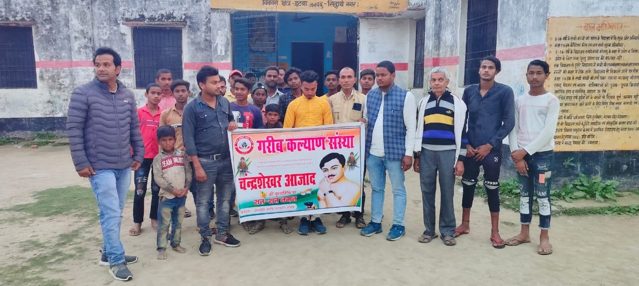 मिश्रोलिया, सिद्धार्थनगर,गरीब कल्याण संस्था द्वारा अमर शहीद भारत मां के वीर सपूत अंग्रेजी हुकूमत के जड़ को हिला कर रख देने वाले भारत मां के वीर सपूत चंद्रशेखर आजाद जी की पुण्यतिथि पर इटवा तहसील के कठेला थाना अंतर्गत पैदल यात्रा निकालकर औरहवा से बजराभारी तक श्रद्धांजलि दिया गया जिसमें तमाम साथी उपस्थित रहे|