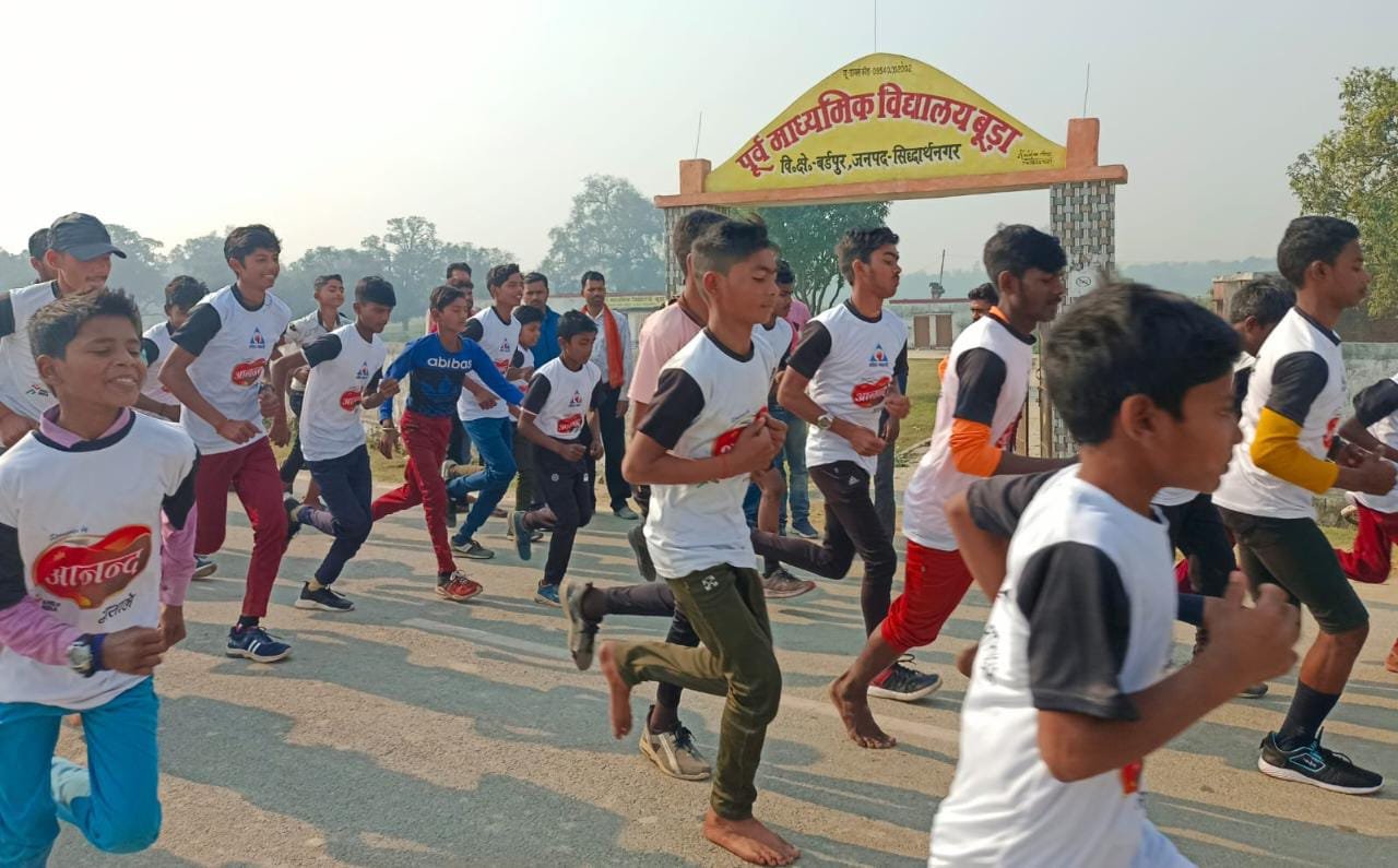 बेसिक शिक्षा विभाग और क्रीड़ा भारती ने समुदाय के सहयोग से स्वाथ्य जागरूकता हेतु इंडोनेपाल बोर्डर के बूड़ा में कराया 5 किलोमीटर दौड़।