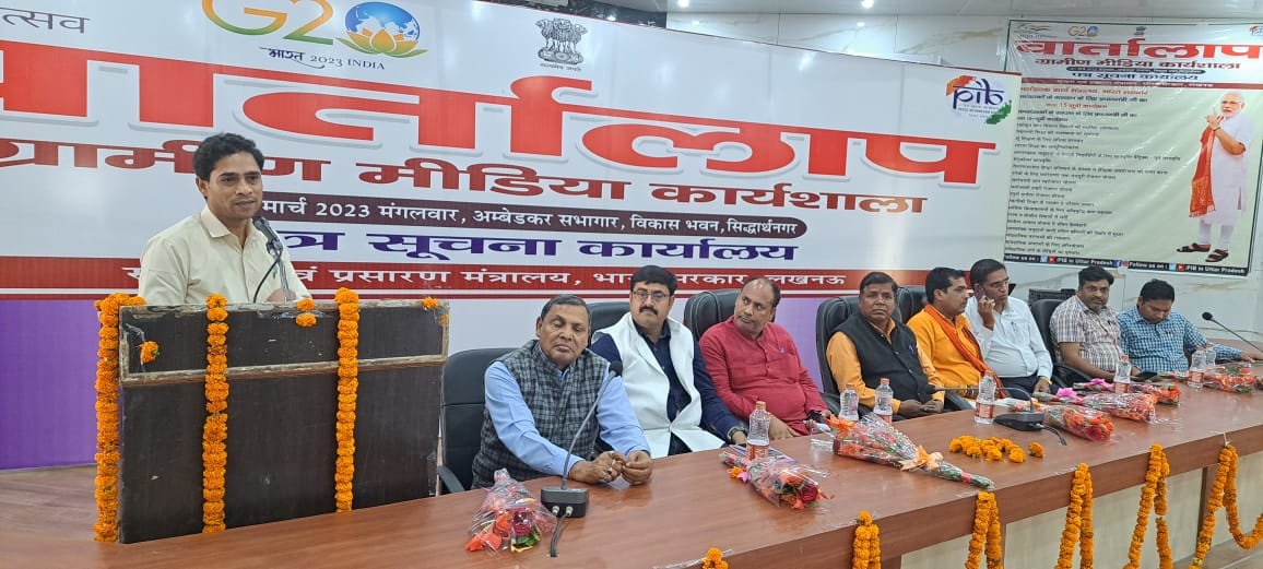 सिद्धार्थनगर। भारत सरकार के केंद्रीय सूचना प्रसारण मंत्रालय के पत्र सूचना कार्यालय (पीआईबी) द्वारा सिद्धार्थनगर जिले के विकास भवन स्थित अम्बेडकर सभागार में ग्रामीण पत्रकारों के लिये ‘’वार्तालाप’’ नामक कार्यशाल का आयोजन किया गया।इस कार्यशाला के माध्यम से पीआईबी लखनऊ ने ग्रामीण पत्रकारों को भारत सरकार द्वारा संचालित केंद्र सरकार की जन कल्याणकारी योजनाओं के बारे में अवगत कराया।