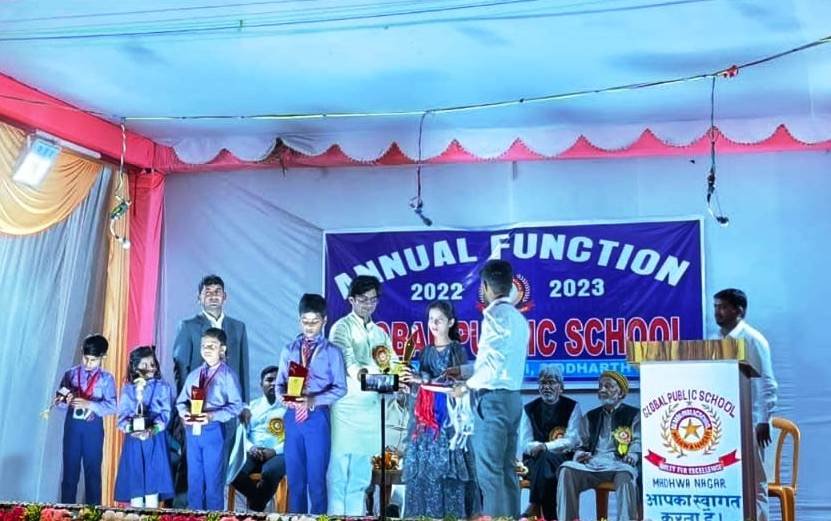 ग्लोबल पब्लिक स्कूल के प्रांगण में आयोजित वार्षिक उत्सव एवं पुरस्कार वितरण समारोह का आयोजन किया गया कार्यक्रम में मुख्य अतिथि के रूप में समाजसेवी हारून रशीद तथा विशिष्ट अतिथि मास्टर करम हुसैन इदरीसी, वरिष्ठ नेता बदरे आलम ,पूर्व जिला पंचायत सदस्य अकील अहमद उर्फ मुन्नू, पूर्व मंडल अध्यक्ष भाजपा सिद्धार्थ शंकर, सपा के जिला सचिव खलकुल्लाह खान, निजाम अहमद आदि ने बारी बारी से अपनी अनमोल बातों को बच्चों एवं अभिभावकों के सामने रखा।