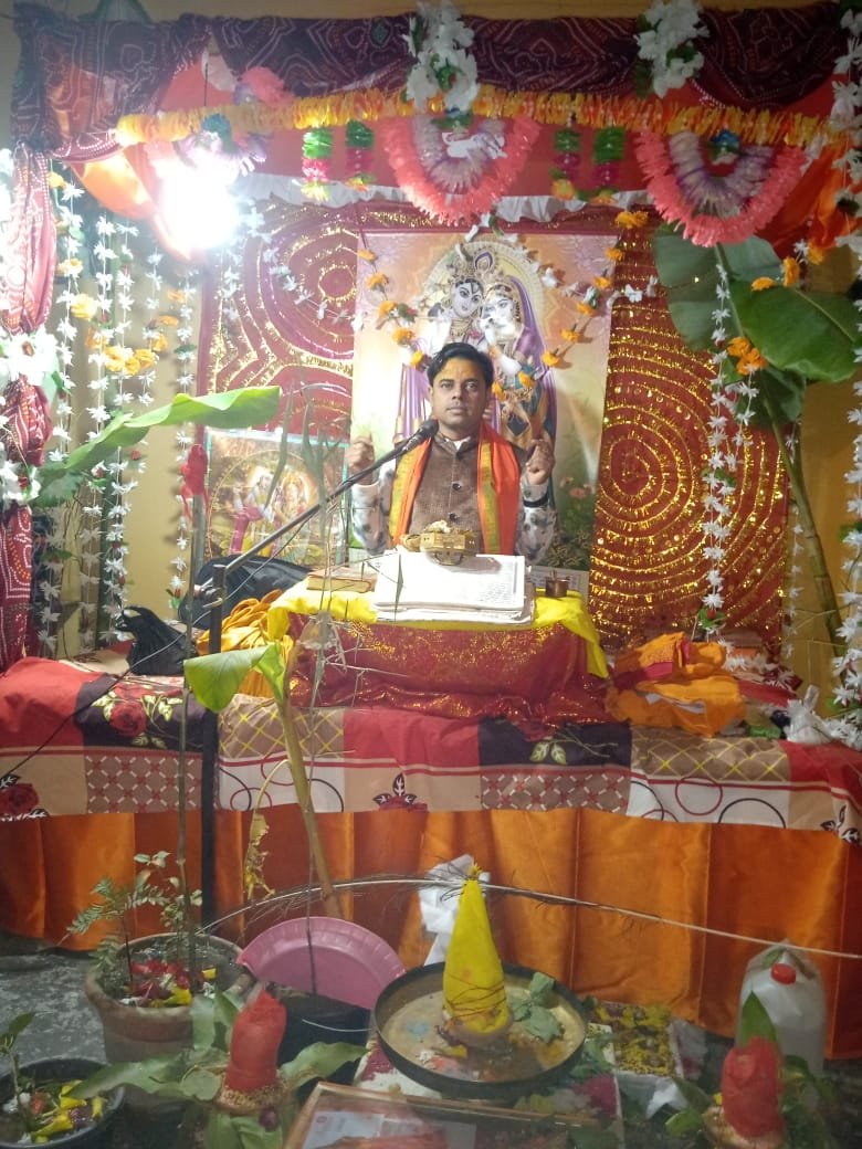 कस्बा के अम्बेडकर नगर वार्ड में चल रहे श्रीमद्भागवत कथा के तीसरे दिन कथा व्यास आचार्य संतोष जी महाराज ने शिव पार्वती विवाह की कथा बड़े ही मार्मिक ढंग से सुनाई। शिव विवाह की कथा सुनकर श्रद्धालु आनंदित हुए।