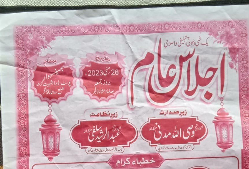 आगे उन्होंने बताया कि कार्यक्रम की अध्यक्षता जमियत अहले हदीश सिद्धार्थनगर के नाजिम मौलाना वसीउल्लाह मदनी और संचालन जमियत अहले हदीश सिद्धार्थनगर के नायब नाजिम मौलाना अब्दुर्रशीद सल्फी करेंगे ।