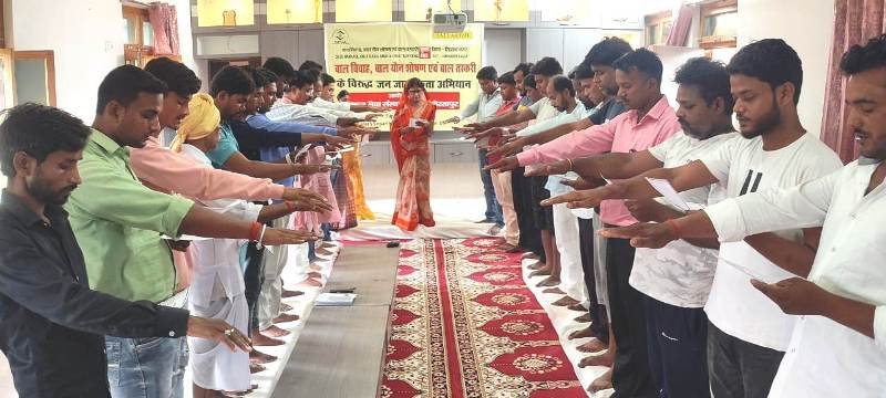 बाल विवाह मुक्त अभियान के तहत शपथ दिलाया कि बाल विवाह एक सामाजिक बुराई होने के साथ साथ कानून अपराध है, इसे समाप्त करने में और लोगो को जागरूक करने में, बाल विवाह रोकने के लिए मैं अपना पूरा योगदान एवं सहयोग करूंगा।