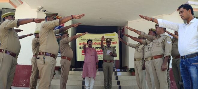 सिद्धार्थनगर। बाल विवाह, बाल यौन शोषण, बाल तस्करी एव बाल श्रम के विरूद्ध कैलाश सत्यार्थी चिल्ड्रेन्स फाउंडेशन के सहयोग से मानव सेवा संस्थान सेवा गोरखपुर द्वारा चलाये जा रहे जागरूकता अभियान के क्रम में मंगलवार को बर्डपुर कस्बे में नागरिकों एवं कपिलवस्तु कोतवाली पर पुलिसकर्मियों को बाल विवाह मुक्त सिद्धार्थनगर अभियान के तहत शपथ दिलाया गया।