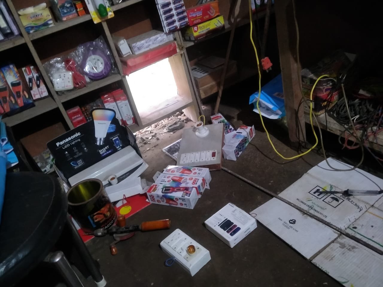 शोहरतगढ थाना क्षेत्र के डोईया चौराहे पर इलेक्ट्रॉनिक की दुकान मे सेंध लगातार कर चोरो ने उड़ाया लाखों का सामान।