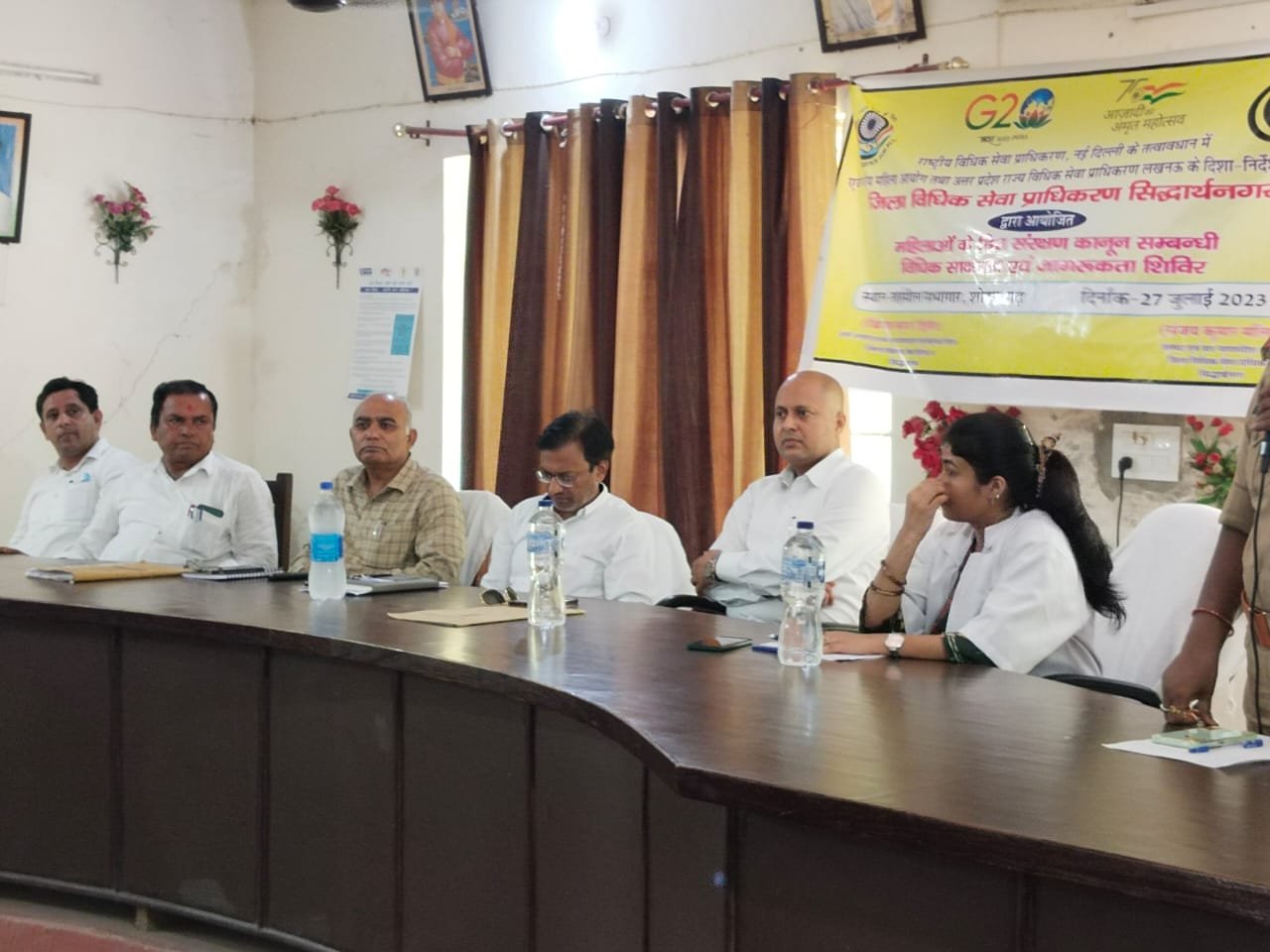 सिद्धार्थनगर माननीय कार्यपालक अध्यक्ष, राष्ट्रीय विधिक सेवा प्राधिकरण नई दिल्ली द्वारा राष्ट्रीय महिला आयोग के प्रस्ताव को अनुमोदित करते हुए दिनांक 12.07.2023 से दिनांक 31.07.2023 के मध्य उत्तर प्रदेश के समस्त जनपदों में 03 विधिक जागरूकता शिविरों का आयोजन तहसील मुख्यालयों पर आयोजित किये जाने हेतु निर्देशित किया गया है। उक्त क्रम में उ०प्र० राज्य विधिक सेवा प्राधिकरण, लखनऊ के निर्देशानुसार एवं माननीय जनपद न्यायाधीश/अध्यक्ष, जिला विधिक सेवा प्राधिकरण सिद्घार्थनगर श्री संजय कुमार मलिक के आदेश के क्रम में श्री ब्रिजेश कुमार-द्वितीय अपर जनपद एवं सत्र न्यायाधीश/पूूर्णकालिक सचिव, जिला विधिक सेवा प्राधिकरण सिद्धार्थनगर द्रारा आज दिनांक 27-07-2023 को तहसील सभागार तहसील शोहरतगढ में विधिक साक्षरता एवं विधिक जागरुकता कार्यक्रम आयोजित किया गया।