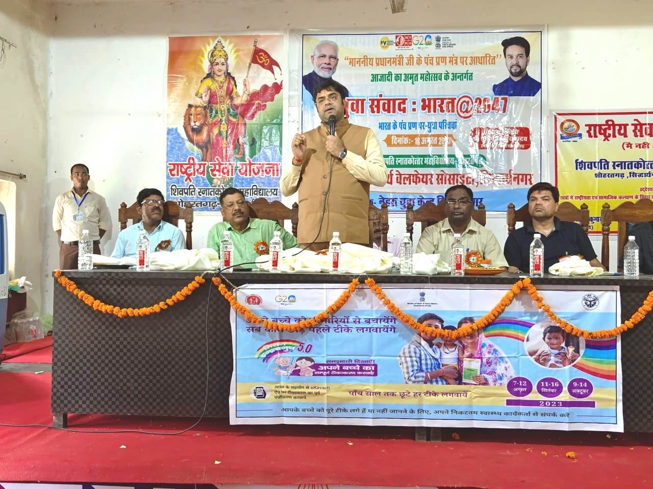 प्रधानमंत्री नरेंद्र मोदी के पंच प्रण मंत्र पर आधारित आजादी का अमृत महोत्सव के अंतर्गत शिवपति स्नातकोत्तर महाविद्यालय शोहरतगढ़ मे युवा संवाद कार्यक्रम का आयोजन किया गया। राष्ट्रीय सेवा योजना के स्वयं सेवको सिद्धार्थ वेलफेयर सोसाइटी एवं नेहरू युवा केंद्र सिद्धार्थ नगर के तत्वाधान में आयोजित कार्यक्रम का शुभारंभ विनय वर्मा ने दीप प्रज्वलित कर किया।