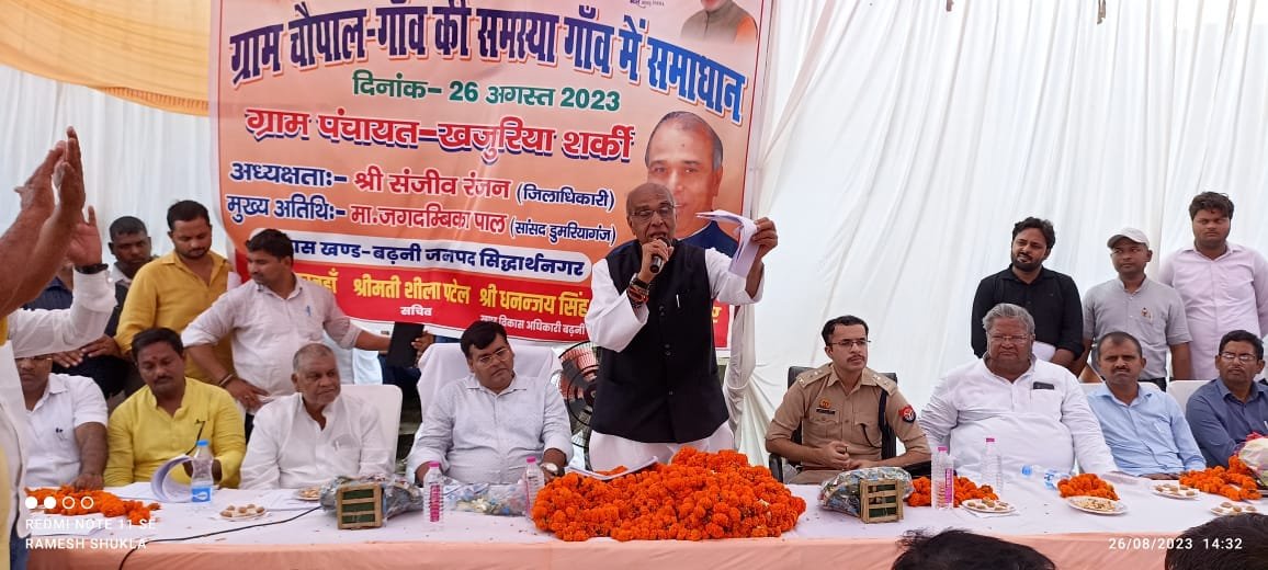 परसा-जिलाधिकारी राजीव रंजन की अध्यक्षता में विकासखंड बढ़नी के ग्राम पंचायत खजुरिया शर्की में ग्राम चौपाल का आयोजन किया गया। चौपाल में मुख्य अतिथि रहे क्षेत्रीय सांसद जगदंबिका पाल ने वहां उपस्थित सभी कर्मचारियों को कहा कि गांव की समस्या गांव में ही समाधान होना चाहिए। ताकि गांव के लोगों को दफ्तरों का चक्कर न लगाना पड़े। योजनाओं का उल्लेख करते हुए सांसद ने कहा कि हमारी सरकार की जो भी योजनाएं हैं जैसे सौभाग्य योजना के अंतर्गत कनेक्शन की बात हो या पंडित दीनदयाल उपाध्याय योजना के अंतर्गत हर घर में बिजली पहुंचाने की बात हो सरकार की योजनाओं का लाभ हर घर तक पहुंचाना हमारा कर्तव्य है। ग्रामीणों को किसी भी योजना का लाभ लेने के लिए दफ्तरों का चक्कर ना कटना पड़े ।अधिकारी गांव में आकर उन योजनाओं का लाभ घर-घर तक पहुंचाएं ।वहां उपस्थित ग्रामीणों को संबोधित करते हुए कहा कि सरकार द्वारा चलाए जा रहे सभी जन कल्याणकारी व महत्वाकांक्षी योजनाओं का लाभ कर्मचारी सीधे लाभार्थियों को दें। चौपाल में आए हुए ग्रामीणों ने अपनी समस्याओं को वहां उपस्थित सभी अधिकारियों के समक्ष रखा। चौपाल कार्यक्रम की अध्यक्षता कर रहे जिला अधिकारी ने कार्यक्रम के संबंध में संबंधित अधिकारियों को आवश्यक निर्देश दिया। उन्होंने विभागीय कार्यक्रमों का आयोजन जन सामान्य के लिए किए जाने हेतु योजनाओं से संबंधित जानकारी देते हुए निर्देशित किया।उन्होंने बताया कि ग्राम पंचायत में जन आरोग्य मेला का आयोजन होना चाहिए। जिसमें आमजन का स्वास्थ्य परीक्षण आयुष्मान कार्ड का वितरण आदि की व्यवस्था होनी चाहिए। कृषि संबंधित व्यवस्था में कृषि फसल बीमा की जानकारी दिया गया। प्रधानमंत्री आवास, मुख्यमंत्री आवास योजना, स्वच्छ शौचालय, विधवा पेंशन, वृद्धा पेंशन, विकलांग पेंशन, प्रधानमंत्री किसान सम्मान निधि योजना जैसी समस्याओं का कर्मचारियों द्वारा निस्तारण करने के लिए आदेशित किया गया। खाद्य सुरक्षा के अंतर्गत पात्र परिवारों को राशन कार्ड तथा खाद्य सामग्री का वितरण, गरीब बालिकाओं के विवाहित संचालित योजनाओं का लाभ पात्र बालिकाओं को दिए जाने की व्यवस्था, धात्री महिलाओं को कुपोषित बच्चों का स्वास्थ्य परीक्षण एवं पोषाहार वितरण तथा कौशल विकास कार्यक्रम जैसी योजनाओं का विस्तार पूर्वक जानकारी दिया गया। चौपाल कार्यक्रम का संचालन युवा समाजसेवी अनील अग्रहरि ने किया। चौपाल कार्यक्रम में पुलिस अधीक्षक अभिषेक अग्रवाल, उपजिलाधिकारी प्रदीप कुमार यादव, खंड शिक्षा अधिकारी रामु प्रसाद, खंड विकास अधिकारी धनंजय सिंह,प्रभारी प्राथमिक स्वास्थ्य केंद्र बढ़नी अविनाश चौधरी,अवर अभियंता विद्युत सुरेंद्र कुमार,अभियंता लघु सिंचाई विभाग