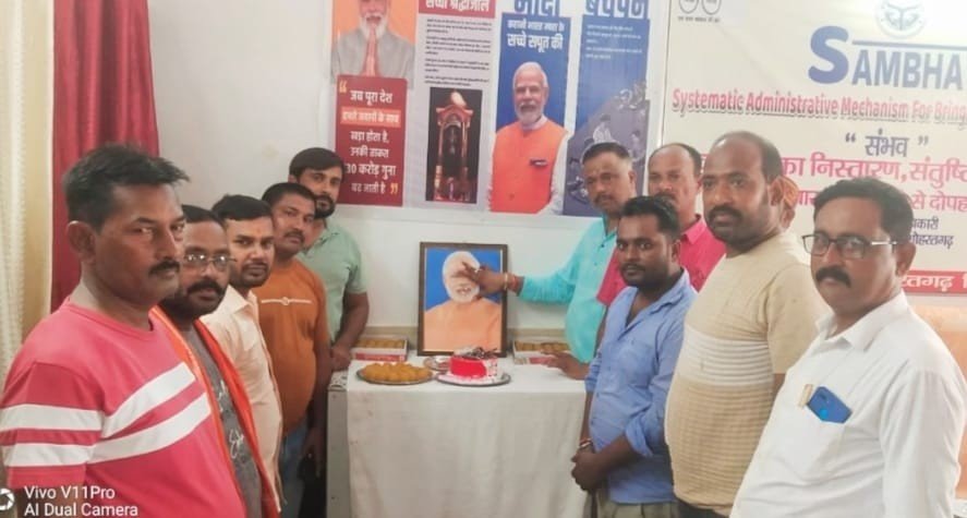 नगर पंचायत सभागार में चैयरमैन प्रतिनिधि रवि अग्रवाल ने हर्षोल्लास के साथ पीएम मोदी का जन्मदिन मनाया। वहां मौजूद लोगो ने पीएम मोदी के चित्र पर तिलक लगाकर उनके दीर्घायु होने की कामना की। उन्होंने कहा कि प्रधानमंत्री नरेन्द मोदी की अगुआई में आज भारत 21वीं सदी की सबसे जागृत अवस्था में है। प्रधानमंत्री नरेन्द्र मोदी ने गवर्नंस के हर पहलू में बेहतर प्रदर्शन किया है और भारत को आध्यात्मिकता, तकनीक और अर्थव्यवस्था के क्षेत्र में दुनिया में अग्रणी लोकतंत्र बनाया है। हर तरह से देश को एकजुट करने में प्रधानमंत्री नरेन्द्र मोदी ने जो सफलता हासिल की है, वह कोई दूसरा प्रधानमंत्री नहीं कर सका। विदित हो कि प्रधानमंत्री नरेन्द्र मोदी आज अपना 73वां जन्मदिन मना रहे हैं। पीएम मोदी के जन्मदिन के अवसर पर भाजपा कई कार्यक्रमों का आयोजन कर रही है। उनके इस जन्मदिन को भाजपा सेवा पखवाड़े के तौर पर मना रही है। इसके अलावा देश के विभिन्न हिस्सों में कई कार्यक्रम मनाए जा रहे हैं। इस दौरान वकील खान, बाबूजी अन्सारी, शिवशंकर अग्रहरी, दिनेश कुमार, सतीश चंद वर्मा, प्रमोद श्रीवास्तव, अनूप कसौधन, राजकुमार मोदनवाल, मनोज चौधरी, बबलू गौड़, अवधेश कुमार आर्य, सोनू महतो, राजू बाबा, महेश कसौधन, विकास त्रिपाठी, हैदर अली, कृष्ण अग्रवाल, मनोज तिवारी, लिपिक राजेश त्रिपाठी, कमलेश कुमार गुप्ता, बीडी गुप्ता, सफाई नायक श्रीनिवास, मनोज चौहान, सूरज निगम, अंकित गुप्ता, दुर्गेश अग्रहरि, मलखान आदि मौजूद रहें।