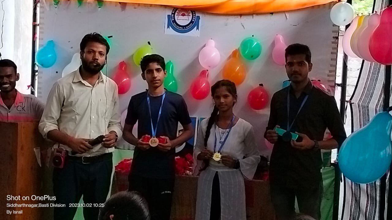 सिद्धार्थनगर, गोल्हौरा सन राइज क्लासेस पर गांधी एवं लालबहादुर शास्त्री जयंती धूम धाम से मनाई गई । कार्यक्रम का शुभारंभ प्रबंधन आशीष श्रीवास्तव एवं विश्व हिन्दू महासंघ के जिला उपाध्यक्ष गोविंद प्रसाद शुक्ल द्वारा महात्मा गांधी और लाल बहादुर शास्त्री की तस्वीर पर पुष्प अर्पित कर की गई । इस अवसर पर दिव्या पाण्डेय, शालीनी, खुशी, अंशिका,मनीता आदि बच्चों ने देशभक्ति गीत सुनाया। प्रबंधन आशीष श्रीवास्तव द्वारा अप्रत्यक्ष रुप से विद्यार्थियों के सामने गांधी जी के विचारों को प्रस्तुत किया गया। इस अवसर पर बच्चों के बीच में निबंधन प्रतियोगिता का आयोजन किया गया।प्रतियोगिता में प्रथम स्थान सुधांशु अग्रहरि द्वितीय स्थान रागनी तृतीय स्थान अतुल अग्रहरि रहे। इन बच्चों को शील्ड मेंडल देकर पुरस्कृत किया गया। इस अवसर पर अनूप दूबे, प्रज्ञा चौधरी, राहुल गुप्ता,दीपक कुमार, रमाकांत, सुनील, रोहित , राहुल, अमित पटेल,आदि तमाम लोग उपस्थित रहे।