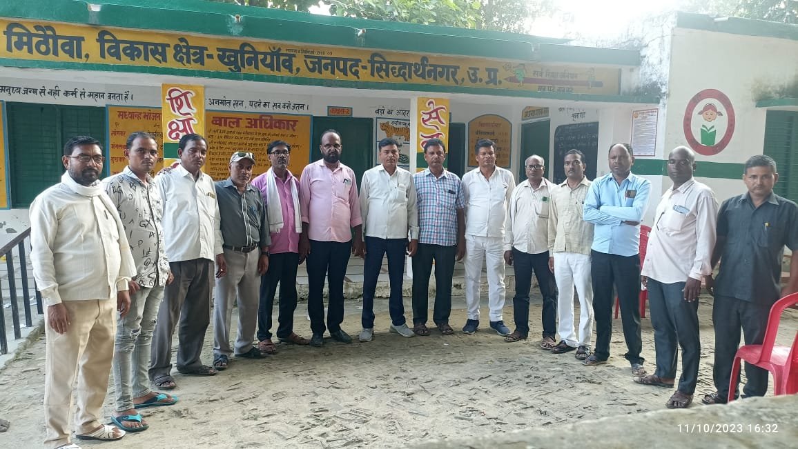 मिश्रोलिया सिद्धार्थनगर विकास खंड खुनियांव अन्तर्गत स्थित प्राथमिक विद्यालय मिठौवा में आज दिनांक 11/10/23को आगामी 18 अक्टूबर लखनऊ के सरजमीं पर विशाल धरना प्रदर्शन को सफल बनाने के लिए बनाई गई रणनीति |