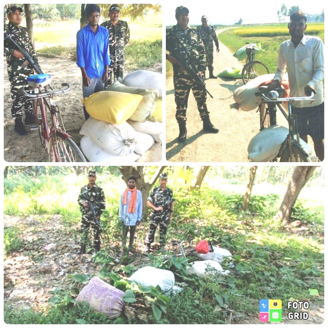 चौकी खूनवां से मुख्य आरक्षी राकेश कुमार के नेतृत्व में मुख्य आरक्षी देवांशु कुमार और अशोक कुमार तथा मुख्य आरक्षी रंजीत राम के नेतृत्व में आरक्षी योगेश सीमा स्तंभ संख्या क्रमशः 550, 554 और 556 के लिए रवाना हुए I चिन्हित स्थानों पर पहुंचने के उपरान्त गस्ती दलों ने देखा कि कुछ व्यक्ति साइकल पर बोरी लादे भारत से नेपाल जाने की कोशिश कर रहे है।