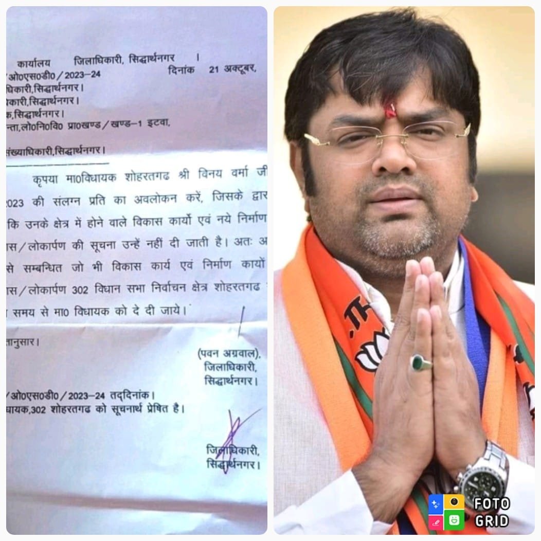 जिसके क्रम में डीएम ने सीडीओ, मुख्य चिकित्साधिकारी, उप कृषि निदेशक, अधिशासी अभियन्ता, लो०नि०वि० प्रा० खण्ड/खण्ड-1 इटवा तथा जिला अर्थ एवं संख्याधिकारी, सिद्धार्थनगर को पत्र लिखकर बताया कि विधायक शोहरतगढ़ के क्षेत्र में होने वाले विकास कार्यो एवं नये निर्माण हेतु भूमि पूजन/शिलान्यास/लोकार्पण की सूचना उन्हें नहीं दी जाती है।