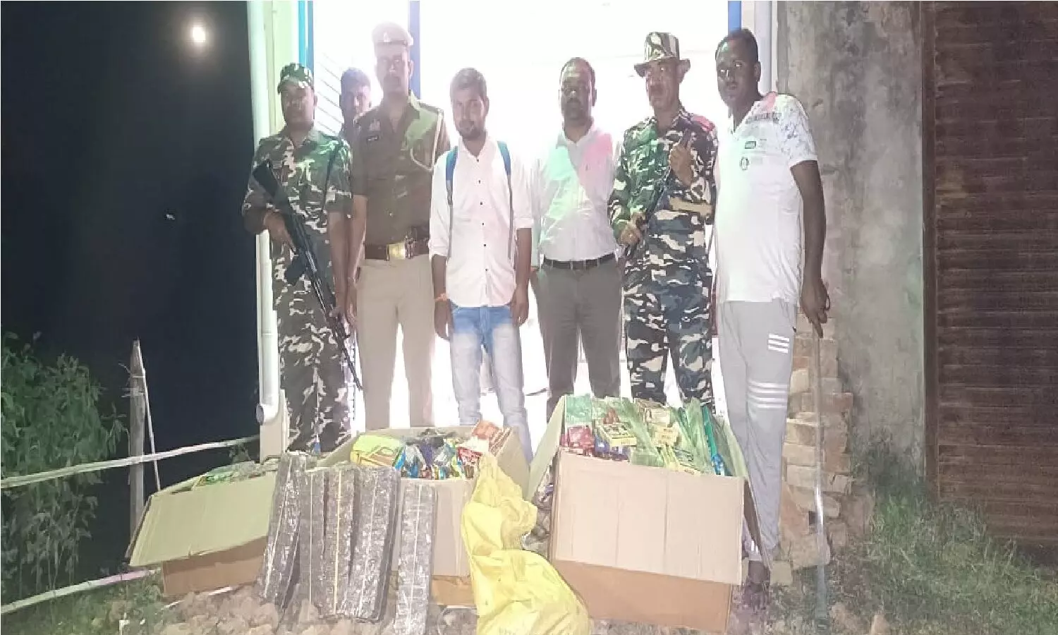 उक्त स्थान के समीप पहुँचने के कुछ समय पश्चात् जवानों ने देखा कि कुछ व्यक्ति दो कार्टून और दो बोरी को लेकर सूचना वाले घर के पास ई-रिकशा से उतरे।