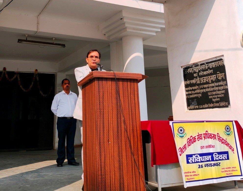 संविधान दिवस के अवसर पर संजय कुमार मलिक, जनपद न्यायाधीश/अध्यक्ष, जिला विधिक सेवा प्राधिकरण, सिद्धार्थनगर द्वारा जनपद न्यायालय के न्यायिक अधिकारीगण एवं जिला प्राधिकरण व जनपद न्यायालय के समस्त कर्मचारीगण को संविधान की प्रस्तावना का शपथ दिलाया गया।