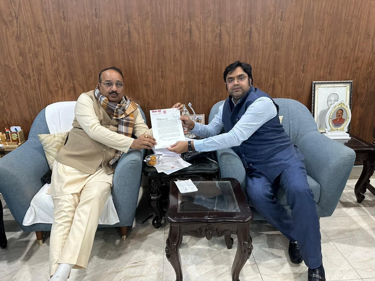 शोहरतगढ मे नवीन सब्जी मंडी निर्माण मे हो रहे देरी को लेकर शोहरतगढ के विधायक विनय वर्मा ने राज्य मंत्री (स्वतंत्र प्रभार) कृषि उत्पादन मंडी परिषद दिनेश प्रताप सिंह से मुलाकात कर ज्ञापन सौपा विधायक ने मंत्री जी को ज्ञापन सौंपते हुए बताया वंकि हमारे विधानसभा क्षेत्र अंतर्गत 2 साल पूर्व शासन स्तर से स्वीकृत नवीन सब्ज़ी मंडी का कार्य शुरु कराया गया था। जिसके संदर्भ में हमारे क्षेत्रीय कृषकों द्वारा मिली शिकायत में यह कहा