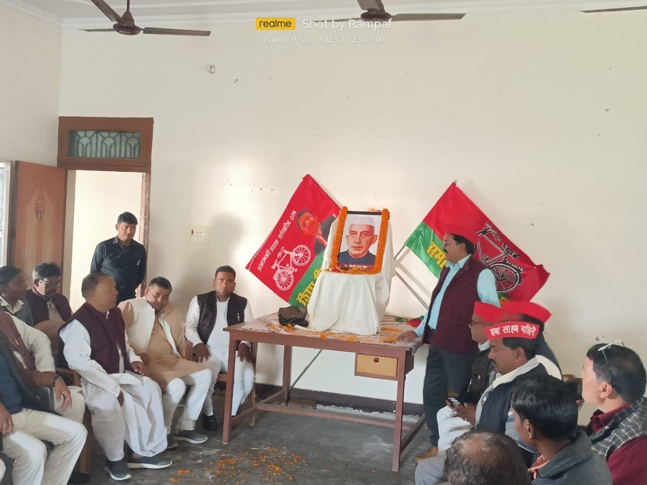 सिद्धार्थनगर। समाजवादी पार्टी के जिला कार्यालय पर शनिवार को किसानों के मसीहा भारत के पूर्व प्रधानमंत्री चौधरी चरण सिंह की 121वीं जयंती किसान दिवस के रूप में समाजवादी पार्टी के जिला अध्यक्ष माननीय लाल जी यादव की अध्यक्षता में मनाया गया और उनके चित्र पर माल्यार्पण कर उन्हें श्रद्धा सुमन अर्पित किया गया तथा एक विचार गोष्ठी कर उनके जीवन पर विस्तृत रूप से चर्चा की गई और उनके पद चिन्हो पर चलने का संकल्प लिया गया।