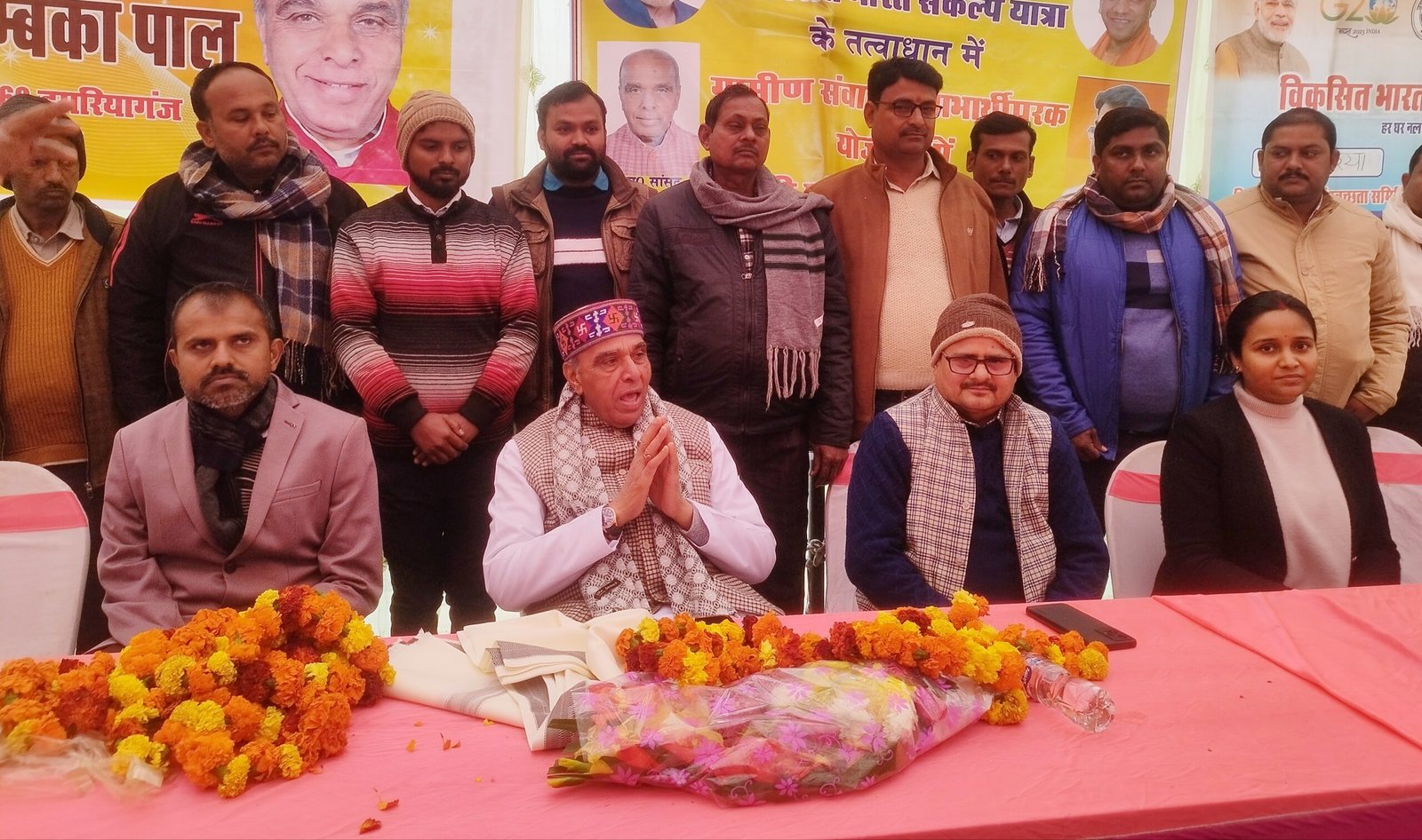 कार्यक्रम को संबोधित करते हुए एम एल सी प्रतिनिधि डा.पवन मिश्र ने केंद्र व राज्य सरकार के द्वारा चलाये गये योजनाओ के साथ गांव के विकास के लिए लोगो को बिस्तार से बताया।