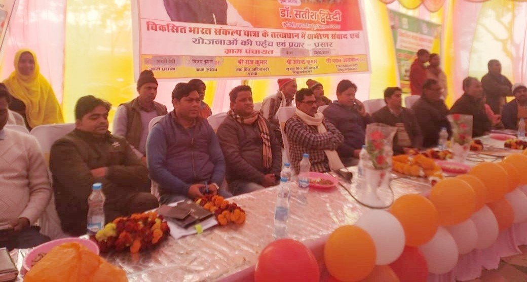 सिद्धार्थनगर जिले में विकसित भारत संकल्प यात्रा कार्यक्रम का आयोजन किया गया यह कार्यक्रम इटवा ब्लॉक के ग्राम पंचायत बैरवा के ग्राम पंचायत के पंचायत भवन बैरवा में आयोजित किया गया। विद्यालय के बच्चों द्वारा संस्कृति कार्यक्रम कर मुख्य अतिथि का स्वागत किया। जिसमें मुख्य अतिथि के रूप में खण्ड विकास राजकुमार के प्रधान आरती देवी व एडियो पंचायत सचिव विजय कुमार शामिल हुए। इस दौरान मुख्य अतिथियों द्वारा सरकार द्वारा चलाई जा रही योजनाओ को आम जनता के बीच रखा और बताया कि किस प्रकार से डबल इंजन की सरकार उनके लिए कार्य कर रही है। वहीं इस कार्यक्रम में विभिन्न योजनाओ द्वारा लाभान्वित लाभार्थियों को प्रमाण पत्र भी वितरण किया गया। इसके अलावा कार्यक्रम में गर्भवती महिलाओं की गोद भराई का कार्यक्रम भी किया गया। वही वहीं मीडिया से बात करते हुए ग्राम प्रधान प्रतिनिध ने कहा कि केंद्र व प्रदेश सरकार द्वारा चलाई जा रहे। जनकल्याणकारी योजनाओं का जिक्र करते हुए से सरकार द्वारा किए जा रही योजनाओं का गुणगान किया। कार्यक्रम में कई विभागों के स्टाल भी लगाए गए।और लोगों ने अपनी आवश्यकता अनुसार विरधा पेंशन विकलांग पेंशन विधवा पेंशन एवं तरह-तरह की बीमारियों के दवाई लिए वहीं लोगों ने शौचालय के लिए भी अप्लाई किया।