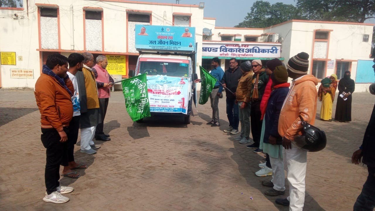 राज्य पेयजल एवं स्वच्छता मिशन नमामि गंगे तथा ग्रामीण जल आपूर्ति विभाग उत्तर प्रदेश शासन के तत्वाधान में चलाए जा रहे जन जागरूकता कार्यक्रम के अंतर्गत आज जनपद सिद्धार्थनगर के विकासखंड बांसी में संस्था मेंसर्श फाल्कन लखनऊ के द्वारा जन जागरूकता कार्यक्रम आयोजित किए गए जिसमें एलईडी वैन होर्डिंग बैनर ग्राफिटी आदि के माध्यम से ग्राम पंचायत में जन जागरूकता फैलाई जाएगी ग्राम पंचायत में एलईडी वैन के माध्यम से पेयजल स्वच्छता पर आधारित फिल्म दिखाकर लोगों को पेयजल स्वच्छता के बारे में अवगत कराया जाएगा कार्यक्रम में उपस्थित आदरणीय खंड विकास अधिकारी लालजी शुक्ला आदरणीय सहायक विकास अधिकारी पंचायत अजय राय एडीओ आईएसबी एवं जल जीवन मिशन की टीम से जिला परियोजना समन्वयक तौक़ीर आज़म सहायक गोविंद सिंह तरुण त्रिपाठी अनिल निषाद विजय पाल निखिल यादव समस्त ग्राम पंचायत से आए ग्राम प्रधान पंचायत सहायक ग्राम पंचायत अधिकारी एवं मीडिया से पत्रकार बंधु कार्यक्रम मैं उपस्थित रहे खंड विकास अधिकारी ने संबोधन में कहा कि इस तरह के कार्यक्रम समाज में परिवर्तन लाएंगे और लोग पेयजल और स्वच्छता को लेकर अपनी जिम्मेदारी समझेंगे कार्यक्रम के पश्चात आदरणीय खंड विकास अधिकारी महोदय ने अपनी शुभकामनाओं के साथ हरी झंडी दिखाकर टीमों को ग्राम पंचायत के लिए रवाना किया।