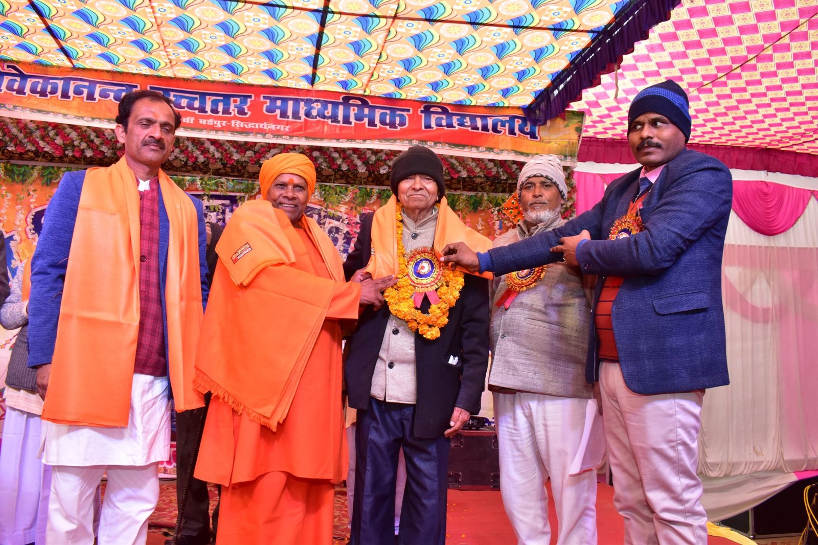 सिद्धार्थनगर। स्वामी विवेकानंद जी ने अमेरिका के धर्म संसद में भाषण देकर हर किसी को हिंदुत्व और आध्यात्म का बोध कराया था। स्वामी विवेकानंद समाज के सुधार के लिए शिक्षा की शक्ति में विश्वास करते थे। उक्त बातें सदर विधायक श्याम धनी राही ने बर्डपुर में स्वामी विवेकानंद विद्यालय द्वारा आयोजित स्वामी विवेकानंद जयंती समारोह के आयोजन को सम्बोधित करते हुए बतौर मुख्य अतिथि कही। उन्होंने आगे कहा कि स्वामी विवेकानंद जी चरित्र-निर्माण और मूल्य-आधारित शिक्षा के महत्व पर जोर देते थे। अपने भाषणों और लेखों के माध्यम से उन्होंने अनगिनत लोगों को प्रेरित किया और भारत की सांस्कृतिक और आध्यात्मिक पहचान को दुनिया भर में पहुंचाने के लिए महत्वपूर्ण भूमिका निभाई है, जिनके जीवन शैली से प्रेरणा लेकर इस विद्यालय द्वारा बच्चों को शिक्षित किया जा रहा है। ऐसे विद्यालयों से आगे बढ़ कर देश का नाम रोशन करेंगे। विशिष्ट अतिथि वरिष्ठ समाजसेवी ओम प्रकाश यादव ने स्वामी जी के जीवन पर प्रकाश डालते हुए कहा कि अमेरिका के धर्म संसद में पूरे विश्व को हिंदुत्व और आध्यात्म का ज्ञान दिया स्वामी विवेकानंद जी ने दिया था। शिकागो में आयोजित धर्म संसद में स्वामी विवेकानंद शामिल हुए थे, यह किसी भारतीय के लिए बड़ी उपलब्धि है। वहां जब स्वामी विवेकानंद जी ने अपने भाषण की शुरुआत हिंदी में करते हुए कहा, ‘अमेरिका के भाइयों और बहनों’ तो उनकी आवाज की ऊर्जा से हर कोई उन्हें सुनने को मजबूर हो गया। आर्ट इंस्टीट्यूट ऑफ शिकागो के भाषण के बाद दो मिनट तक तालियों से गूंजता रहा। इतिहास में यह दिन भारत के लिए गर्व और सम्मान की घटना के तौर पर दर्ज है। दो दिवसीय कार्यक्रम के प्रथम दिन शुक्रवार को स्वामी विवेकानंद विद्यालय द्वारा क्षेत्र के सेवानिवृत्त शिक्षकों राष्ट्रपति पुरुस्कार से सम्मानित सेवानिवृत्त शिक्षक विश्वम्भर नाथ पाण्डेय, राम चन्द्र यादव, कामता यादव, साँवल प्रसाद, गणेश जायसवाल, बाल गोविंद चौधरी, हरिहर प्रसाद, सन्तराम चौधरी, राम शंकर, सन्तराम गुप्त, उदयराज पटवा, बेचन प्रसाद, भैरव मिश्र को अंग वस्त्र एव स्मृति चिह्न देकर सम्मानित किया गया। ततपश्चात विद्यालय के छात्र- छात्राओं द्वारा विभिन्न संस्कृतिक कार्यक्रम स्वागत गीत, गायन, एकांकी, नृत्य, भाषण प्रस्तुत किये गए। अंत में