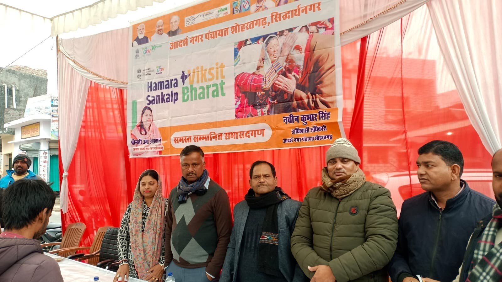 आज शासन के निर्देश के क्रम में नगर पंचायत शोहरतगढ़ के वार्ड संख्या 04, दशरथ नगर में स्थित तिरंगा तिराहा पर विकसित भारत संकल्प यात्रा कार्यक्रम के अंतर्गत शिविर लगाकर सरकार की योजनाओं की जानकारी दिया गया ।