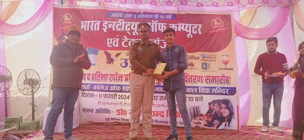 सिद्धार्थनगर के नगर पंचायत बिस्कोहर स्थित भारत इंस्टीच्यूट ऑफ कंप्यूटर एंड टेक्नोलॉजी व कालेज ऑफ एक्सीलेंस में रविवार को सामान्य ज्ञान प्रतिभा खोज परीक्षा का पुरस्कार वितरण समारोह का आयोजन किया गया। मुख्य अतिथि नगर पंचायत अध्यक्ष अजय गुप्ता ने दीप प्रज्ज्वलित कर सम्मान समारोह का शुभारंभ किया।