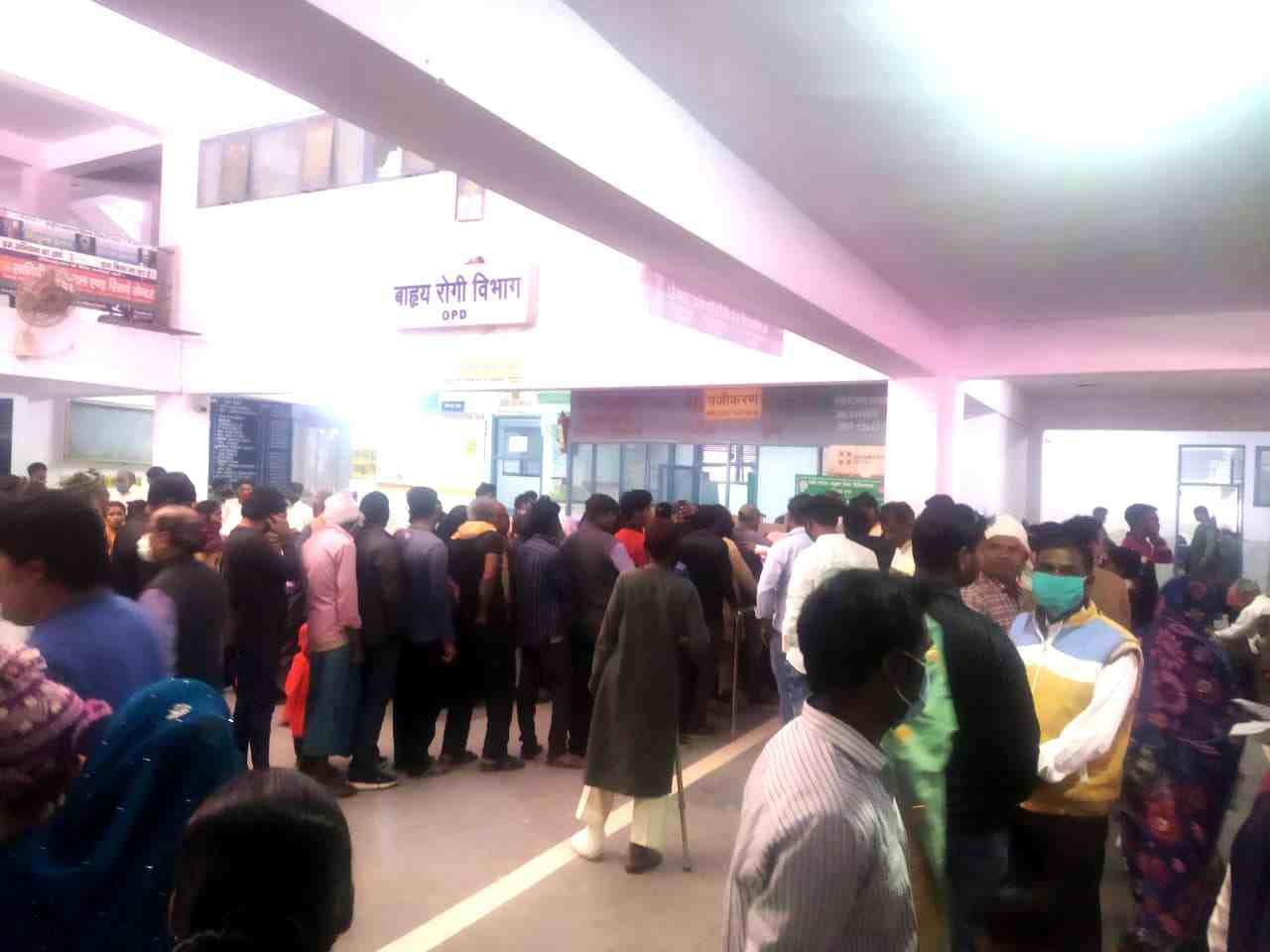 जिला अस्पताल में इलाज के लिए पहले रजिस्ट्रेशन किया जाता है, जिसके लिये मरीजो की लम्बी कतार लगी रहती है, लगभग हजार से पन्द्रह सौ तक प्रति दिन रजिस्ट्रेशन होता है, वही लगभग एक हजार पुराने पर्चे के साथ मरीज जिला अस्पताल पहुँच रहे हैं।