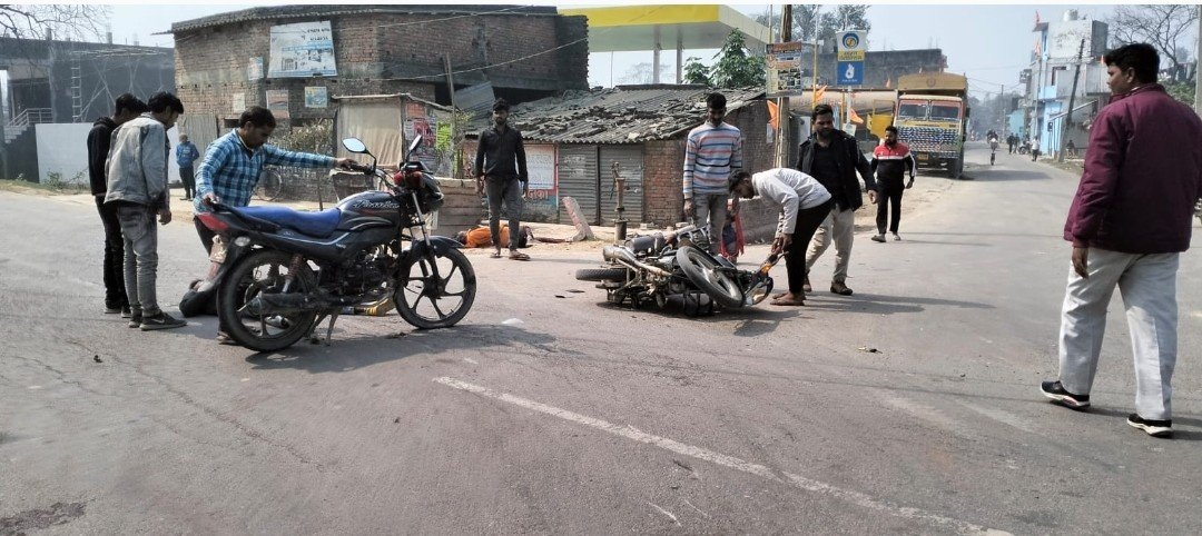 सिद्धार्थनगर। शोहरतगढ । शोहरतगढ–खुनुवा बाई पास के श्रीराम पेट्रोल पंप के पास दो बाइको के जोरदार टक्कर से भीषण दुर्घटना हो गया, जिससे मौके पर ही एक बाइक सवार की दर्दनाक मौत हो गयी और दो लोग बुरी तरह से घायल हो गये।
