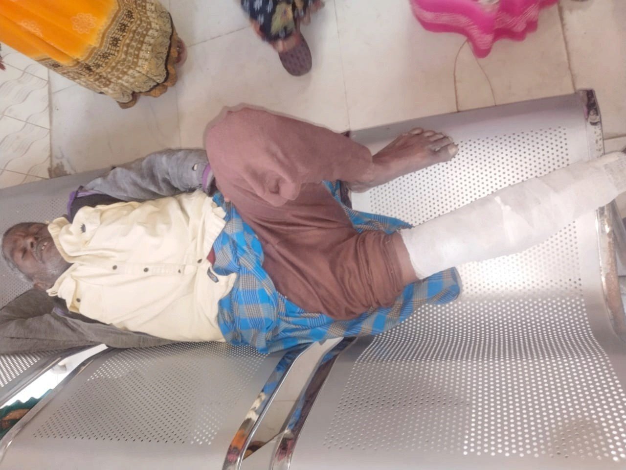 चित्र परिचय। प्राथमिक स्वास्थ्य केंद्र बढ़नी पर इलाज इलाज करवाते पुनीता।