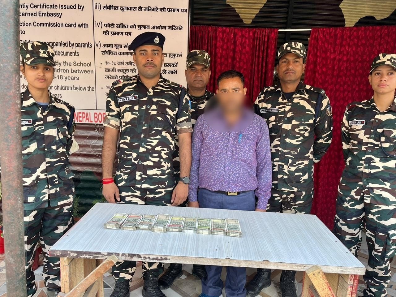 बढ़नी,सिद्धार्थनगर। शुक्रवार को 50वी वाहिनी सशस्त्र सीमा बल “डी” समवाय बढ़नी के द्वारा बॉर्डर चेक पोस्ट पर चेकिंग के दौरान प्यूठान नेपाल निवासी टंक कुमार आचार्य के पास से 4,50,000 रुपए भारतीय मुद्रा बरामद किया गया पूछताछ करने पर उसने बताया कि उक्त रुपए वह लुधियाना पंजाब से नेपाल ले जा रहा था।