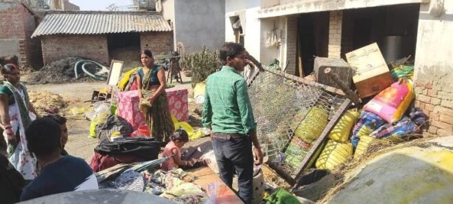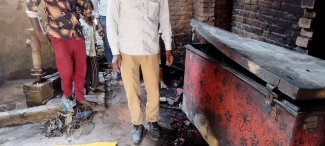 शोहरतगढ़ विधान सभा क्षेत्र के ग्राम दत्तपुर टोला बरगदही में लगी भीषण आग से आधा दर्जन घर जले लाखों के सामान 70 कुंतल गेहूं नगदी व जेवर बर्बाद मौके पर नहीं पहुंची दमकल तहसील प्रशासन से भी कोई झाँकने नहीं गया