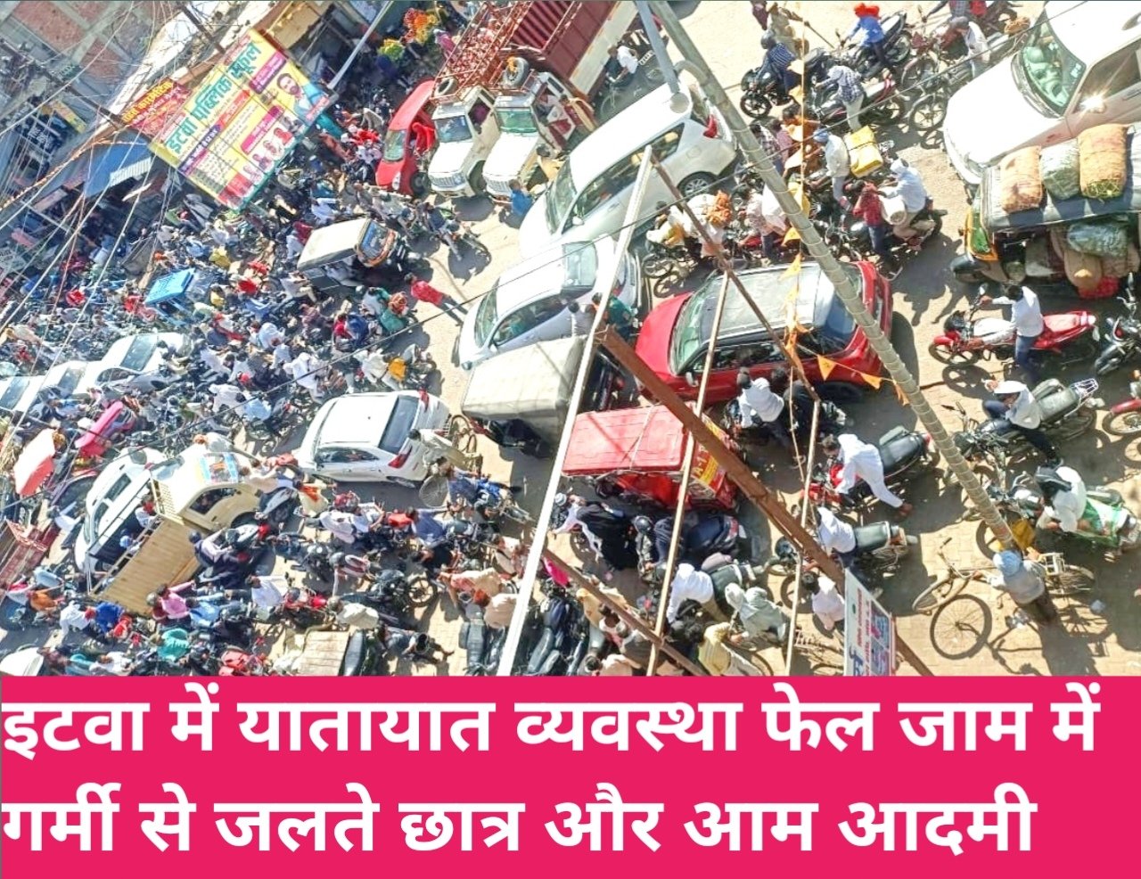 इटवा में बेतरतीब बढ़ता चिल चिलाती धूप में जाम राहगीरों के लिए मुश्किल बनता जा रहा है। सड़क पर ठेला, दुकान लगने से दिन में कई बार जाम लग रहा है।