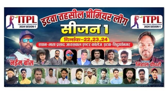 इटवा सिद्धार्थ नगर- माता प्रसाद जायसवाल इंटर कालेज में  दो दिवसीय नाइट टूर्नामेंट इटवा तहसील प्रीमियम लीग सीजन-1 का खिताब – अख्तर इलेवन कठेला के नाम रहा। फाइनल मुकाबले में टीम ने नोबल की टीम को 23 रनों से पराजित कर ट्राफी अपने नाम की।