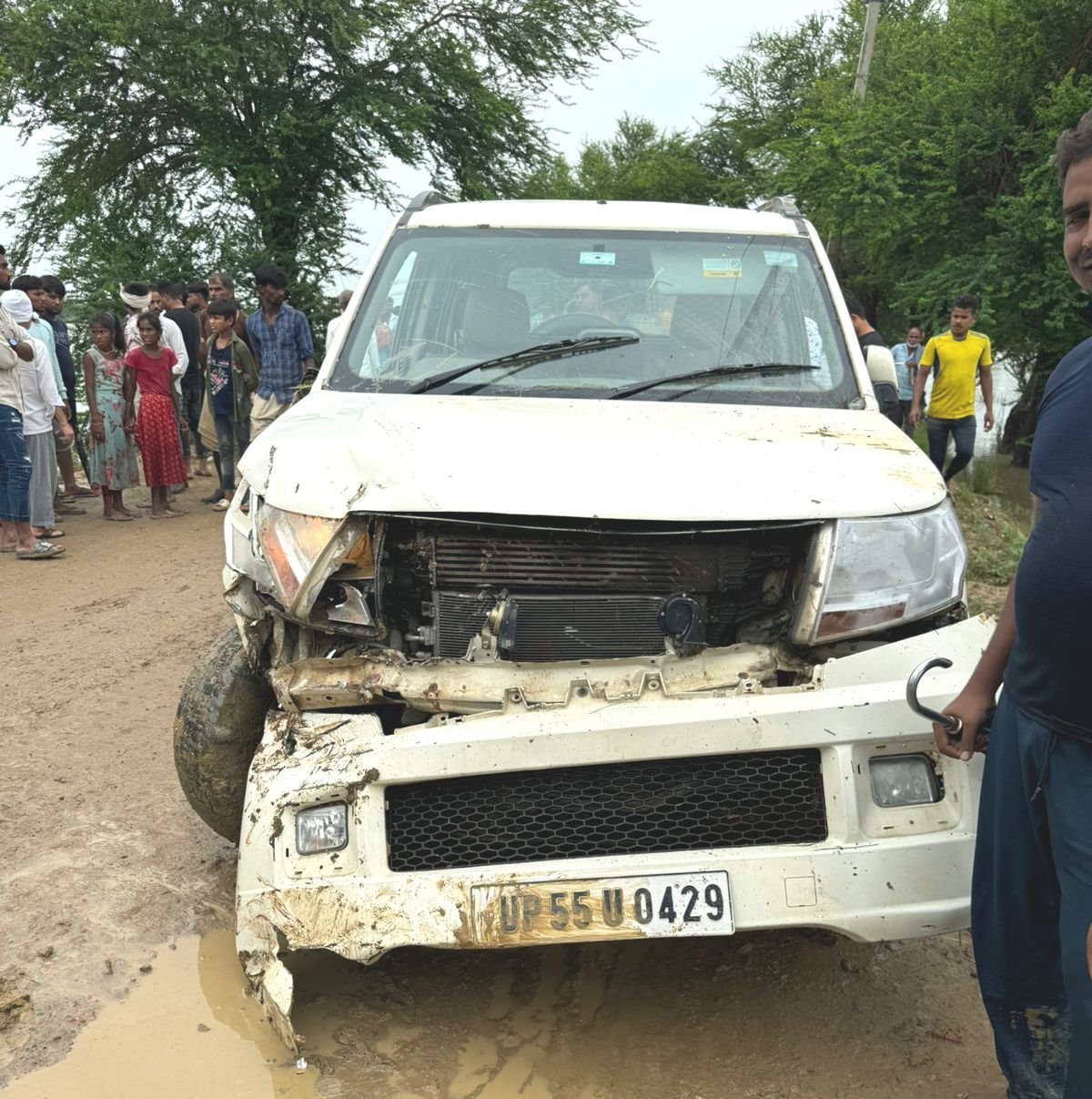 बारात छोड़ कर वापस आरहा था ड्राइवर अशहद। उसी वक्त हुआ हादसा। स्थानीय लोगो ने गाड़ी को पानी से निकाला बाहर।