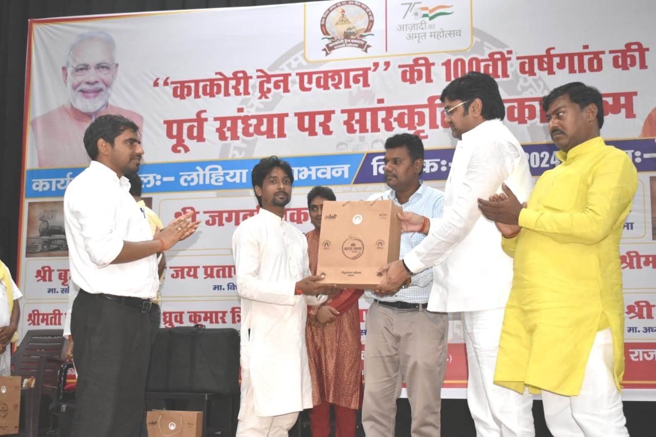 इसके साथ ही पवन पाण्डेय द्वारा भी सांस्कृतिक/देश भक्ति गीत प्रस्तुत किया गया। इस अवसर पर मा0 विधायक शोहरतगढ़  विनय वर्मा ने कहा कि काकोरी ट्रेन एक्शन शताब्दी समारोह में हम अपने वीर सपूतो को याद कर रहे है। शाहजहांपुर और लखनऊ के बीच में काकोरी स्थान पर 09 अगस्त 1925 में हमारे वीर सपूतो ने अंग्रेजो से हमारे देश का पैसा लूटा था जिसके उपलक्ष्य में यह कार्यक्रम मनाया जा रहा है।