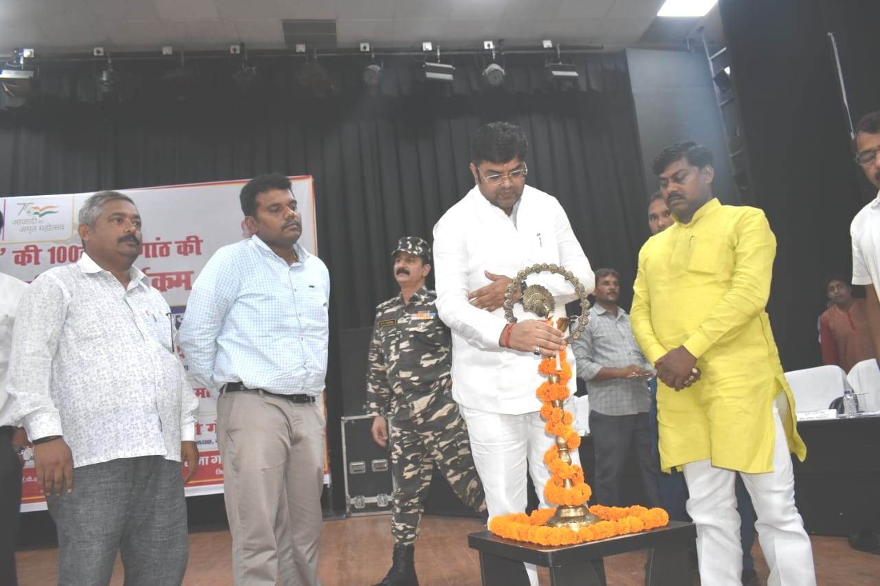 सिद्धार्थनगर 08 अगस्त 2024/“काकोरी ट्रेन एक्शन” की 100वी. वर्षगांठ की पूर्व संध्या पर सांस्कृतिक कार्यक्रम का मा0 विधायक शोहरतगढ़ विनय वर्मा, जिलाध्यक्ष भाजपा कन्हैया पासवान, जिलाधिकारी डा0 राजा गणपति आर0 एवं मुख्य विकास अधिकारी जयेन्द्र कुमार की उपस्थिति में द्वीप प्रज्ज्वलित कर लोहिया कला भवन में शुभारम्भ किया गया।