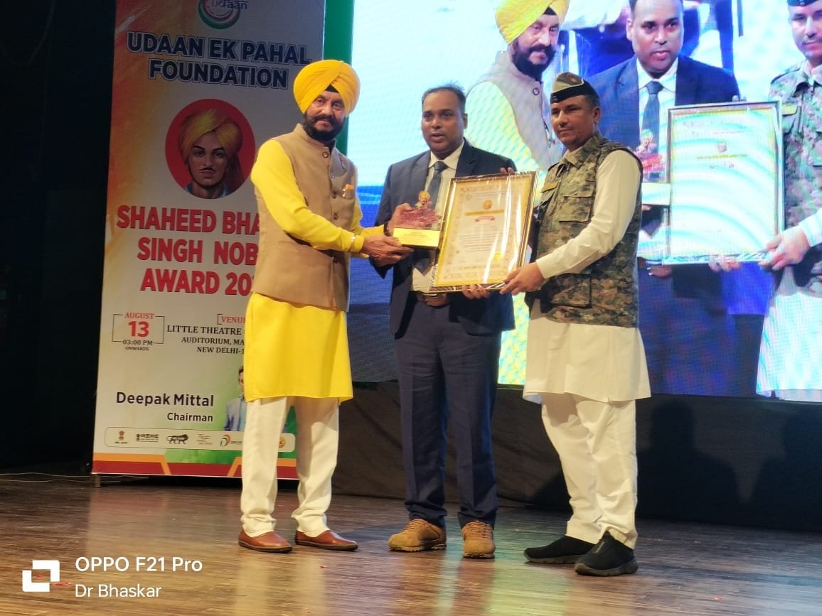 13अगस्त 2024 को नई दिल्ली में अयोजित अवार्ड समारोह में सिद्धार्थनगर उत्तर प्रदेश के डॉक्टर भास्कर शर्मा को पदम श्री जितेंद्र सिंह शंटी जी ने भगत सिंह नोबल अवार्ड देकर सम्मानित किए lगौरतलब है कि डॉक्टर भास्कर शर्मा ने होम्योपैथी चिकित्सा क्षेत्र पद्धति की 156 पुस्तकों का लेखन किया है lडॉ भास्कर शर्मा का नाम लार्जेस्ट होम्योपैथी लेसन के लिए गिनीज वर्ल्ड रिकॉर्ड में दर्ज है l