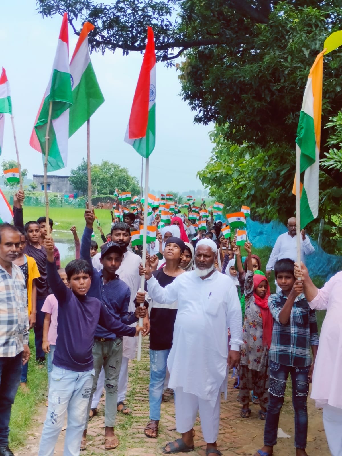 मदरसे के छात्र-छात्राओं ने अपने मदरसे पर पहुंचकर पहले राष्ट्रागान गया उसके बाद हर बच्चे ने इंक्लाब जिंदाबाद हिंदुस्तान जिंदाबाद आदि नारों को लगाते हुए गांव के अंदर प्रभात फेरी निकाल भ्रमण किया मध्यम से लोगों को आज़ादी के पर्व को हर्षले के साथ मनाने की अपील की व हर घर तिरंगे कार्य क्रम को भी सफल बनाने की अपील की ।