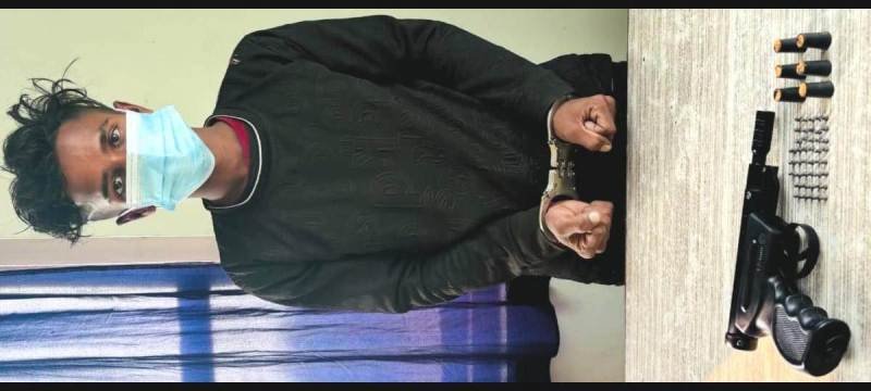 गुप्त सूचना के आधार पर बताया जाता है कि वह एक मोटरसाइकिल चोरी करने की फिराक में था। पुलिस ने तलाशी के दौरान उसके कमर में छिपा हुआ 4.5 मिमी कैलिबर का खतरनाक खिलौना एयर पिस्तौल, एक पिस्तौल, 43 छर्रे आदि बरामद किया है। एक मोबाइल फोन और एक सिम कार्ड भी मिला।
