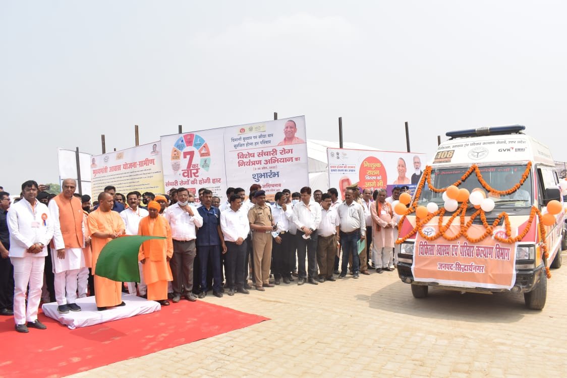 मा0 मुख्यमंत्री जी ने अपने सम्बोधन में कहा कि आज से पूर्व मुझे कई बार सिद्धार्थनगर आने का अवसर मिला है। विशेष संचारी रोग नियंत्रण अभियान/दस्तक अभियान का सुभारम्भ करने के लिए जनपद सिद्धार्थनगर का चयन किया है क्योकि सिद्धार्थनगर एक आकांक्षात्मक जनपद है। यहां पर स्वास्थ्य, शिक्षा आदि पर विशेष ध्यान देने की आवश्यकता है। संचारी रोग मतलब मस्तिष्क ज्वर है। वर्ष 1972 से वर्ष 2017 तक प्रतिवर्ष 2-3 हजार मौते होती थी। मा0 प्रधानमंत्री श्री नरेन्द्र मोदी जी के नेतृत्व में सभी लोगेा के सहयोग से अभियान चलाकर संचारी रोग को पूरी तरह से समाप्त करने में सफलता प्राप्त की है। दिमागी बुखार इस क्षेत्र के लिए अभिशाप बन गया था।