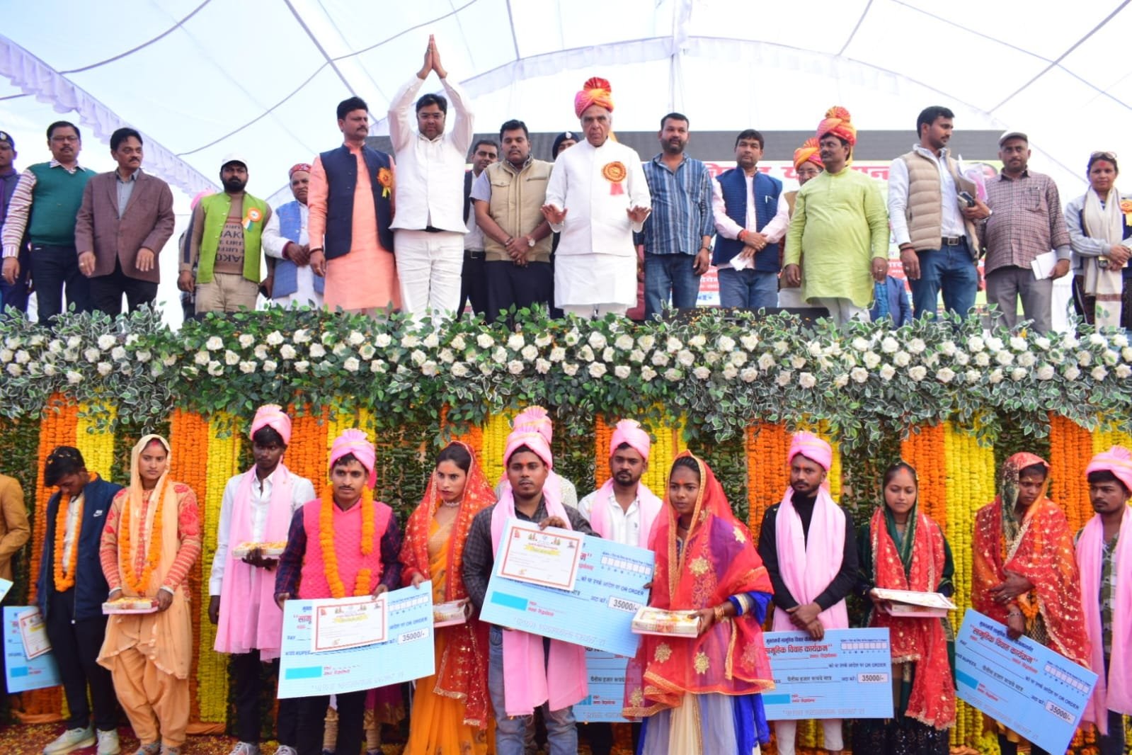 इसका परिणाम है कि आज इतनी बड़ी संख्या में गरीब परिवारों की बेटियों की शादी सम्पन्न हो रही है। सभी नव विवाहित जोड़ों को आर्शीवाद प्रदान किया गया।