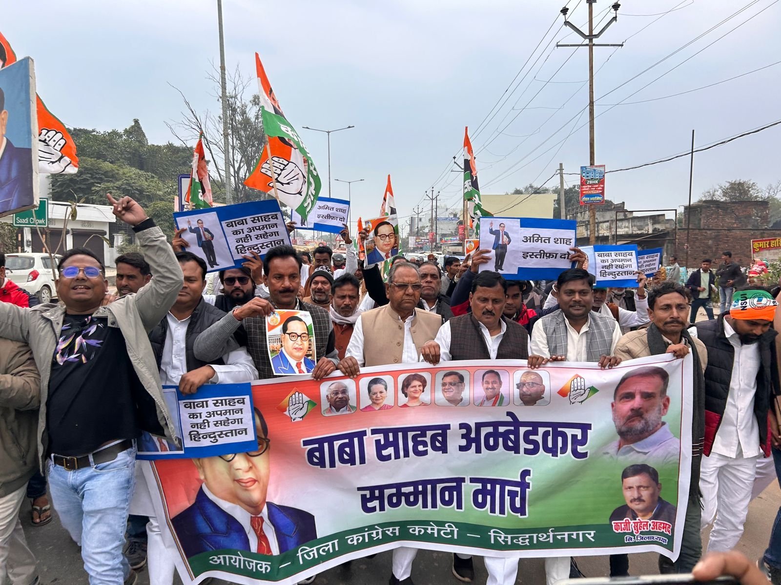 सिद्धार्थनगर 24 दिसंबर / संसद में गृहमंत्री अमित शाह द्वारा संविधान निर्माता बाबा साहब भीमराव अंबेडकर जी के बारे में अपमानजनक एवं अमर्यादित टिप्पणी किए जाने के विरोध में आज कांग्रेस कार्यकर्ताओं ने कांग्रेस पार्टी के निवर्तमान जिला अध्यक्ष काजी सुहेल अहमद के नेतृत्व में जिला कांग्रेस कार्यालय से ” बाबा साहब अंबेडकर सम्मान मार्च ” निकाला ।