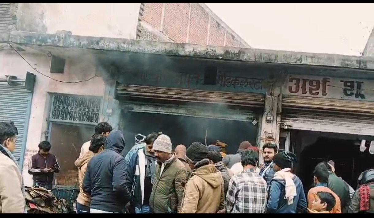 एंकर-सिद्धार्थनगर से बडी खबर भाटिया राजपूत मेडिकल स्टोर में शॉर्ट सर्किट से लगा आग धु धु कर जल रहा मेडिकल स्टोर।