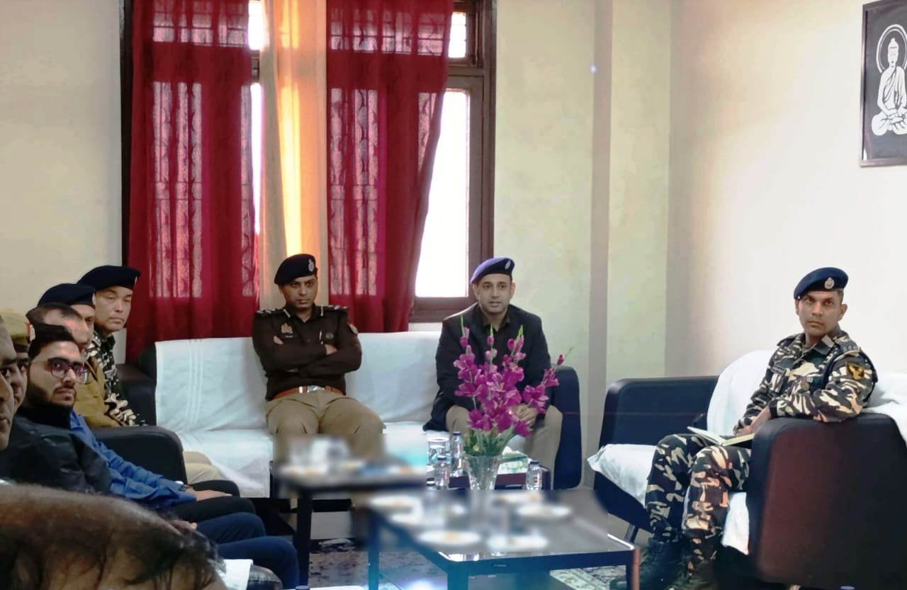 दिनेश कुमार पी, पुलिस उपमहानिरीक्षक बस्ती परिक्षेत्र बस्ती, डाँ अभिषेक महाजन, पुलिस अधीक्षक सिद्धार्थनगर के साथ आज दिनांक 09.01.2025 को सिद्धार्थ विश्वविद्यालय के परिसर में एस.एस.बी.,आईबी, कस्टम विभाग के आधिकारियों के साथ गोष्ठी कर मानव तस्करी, संदिग्ध व्यक्तियों, नशीली दवाओं/अवैध शराब आदि की तस्करी व सीमा पर संदिग्ध गतिविधियों की रोकथाम हेतु सतर्कता बरतने हेतु निर्देशित किया गया ।
