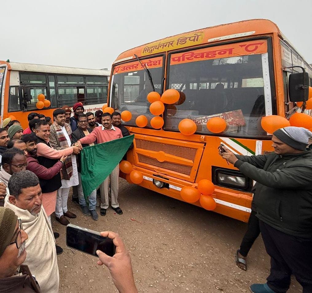सर्वप्रथम मंगलवार को विधायक विनय वर्मा ने बढ़नी रेलवे माल गोदाम से नये बसों को हरी झण्डी दिखाकर प्रयागराज रवाना किया।