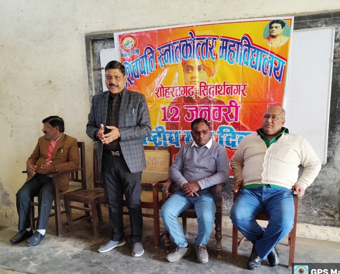 शोहरतगढ़। शिवपति स्नातकोत्तर महाविद्यालय शोहरतगढ़ में शनिवार को राष्ट्रीय सेवा योजना कार्यक्रम में राष्ट्रीय युवा सप्ताह 12जनवरी से 18 जनवरी के अंतिम दिन एक संगोष्ठी का आयोजन किया गया ।